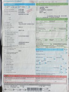 UK REGISTRATION OF VEHICLE